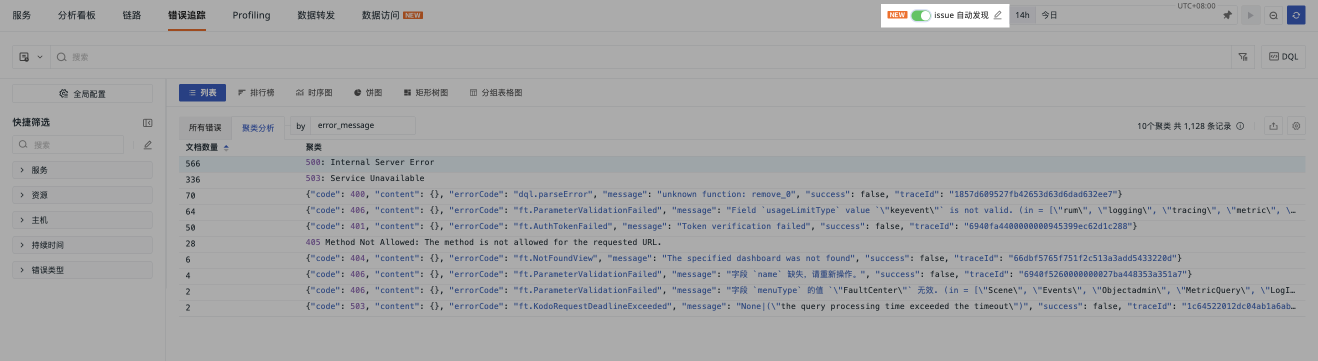 更多详情,可参考 巧用 Issue 自动发现功能快捷响应异常。