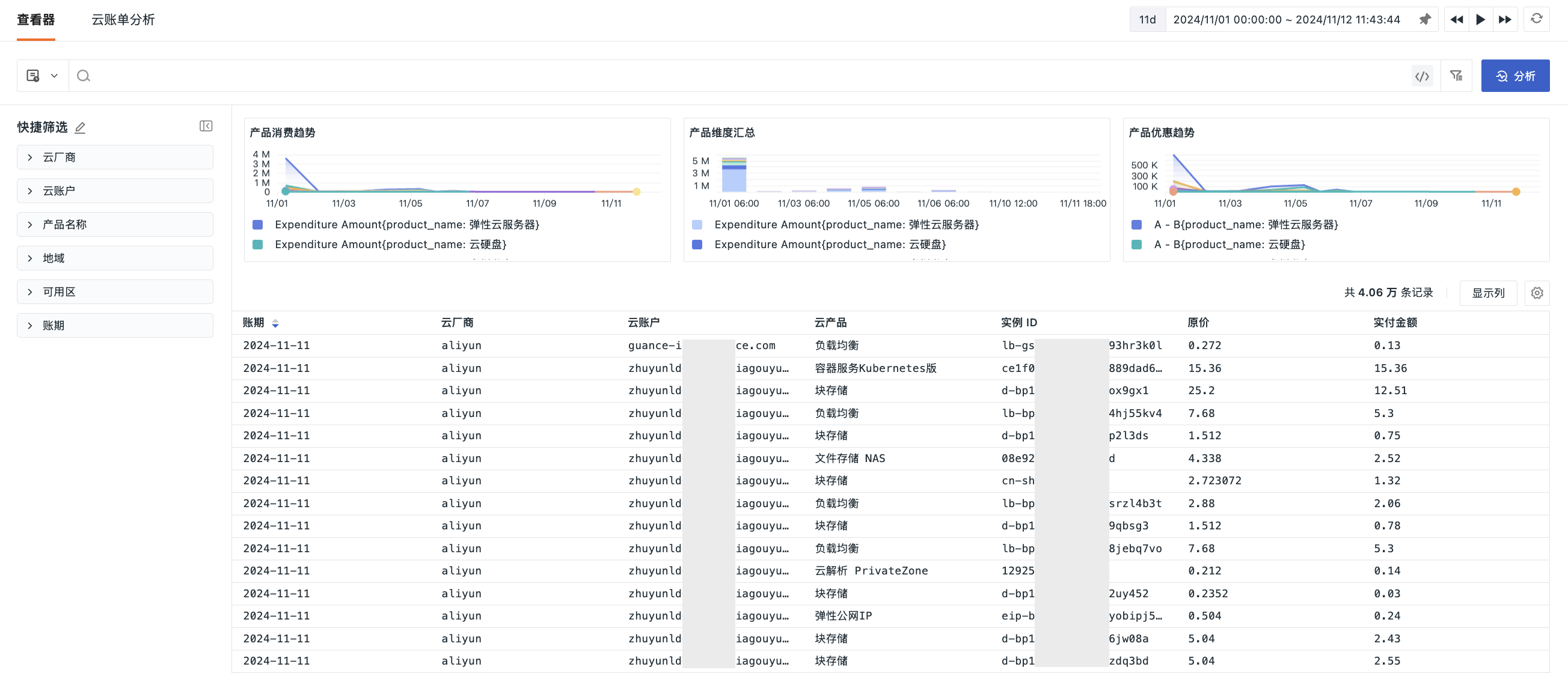 您可以利用云账单查看器,便捷地浏览和筛选来自不同云服务提供商的费用信息,从而实现对云资源消费的全面掌握。