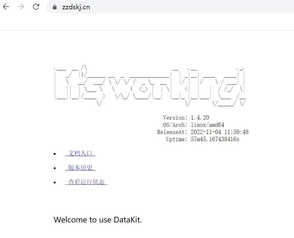 Enter the domain name with HTTPS in the browser. If you see the following interface, the configuration is successful.