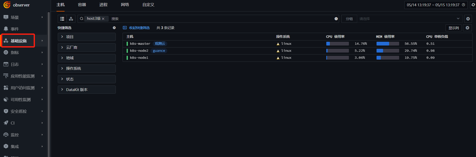 Log in to "Guance" - "Infrastructure", and click "k8s-node1".