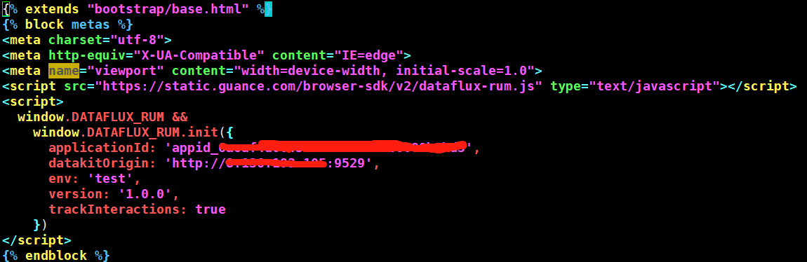 Log in to "Guance", go to "User Access Monitoring", create a new application devops-bookinfo, and copy the JS below.