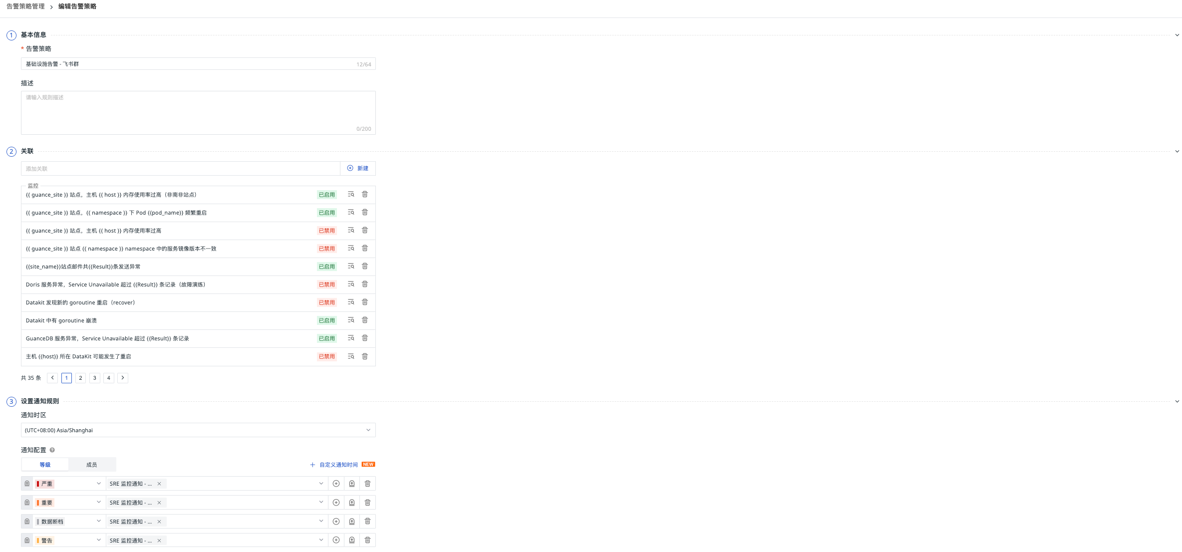 | Business Alert - Lark Group Notification | Critical, Important, Warning | This strategy is a normal level alert. It is recommended to pay continuous attention after events occur. Trigger conditions include: 1. Service log errors; 2. Business logic related anomalies. |