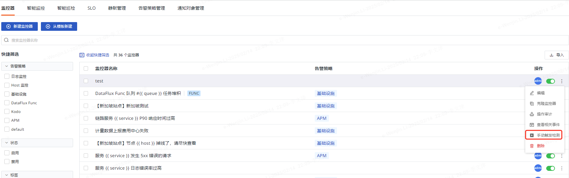 - Log in to the Guance console, select "Monitoring" - click the monitor name link to obtain the automatic trigger configuration ID.
