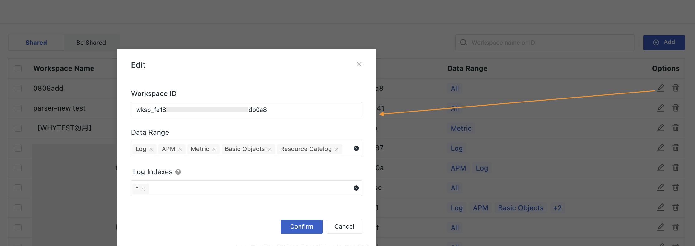 If only logs were authorized, you can directly click Delete in the authorization list to revoke all index item authorizations for "Workspace 2".