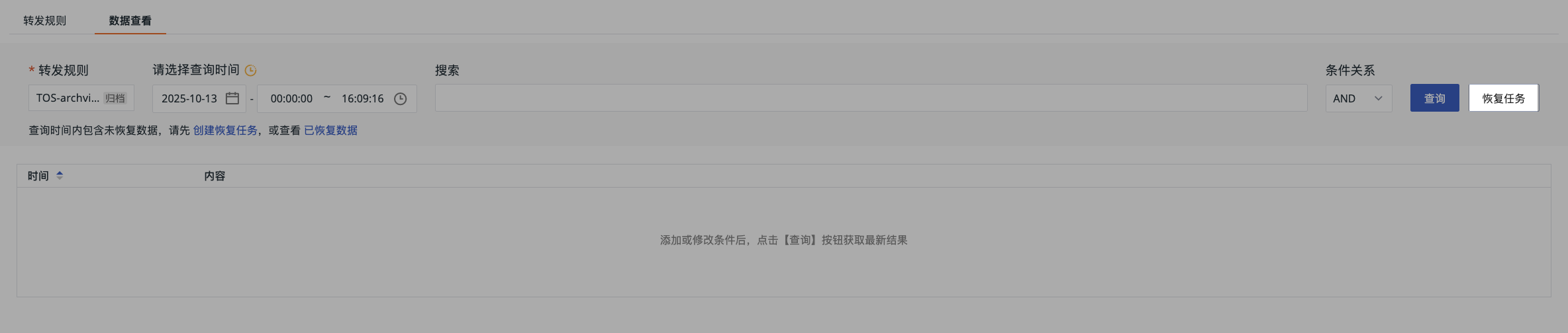 When the storage type of the forwarded data is Archive (mainly referring to Archive Storage and Cold Archive Storage for Volcengine TOS), the data will be in a state that is not directly accessible. If querying is needed at this time, a restore operation must be performed first; after the data is thawed, it can be accessed and analyzed normally.