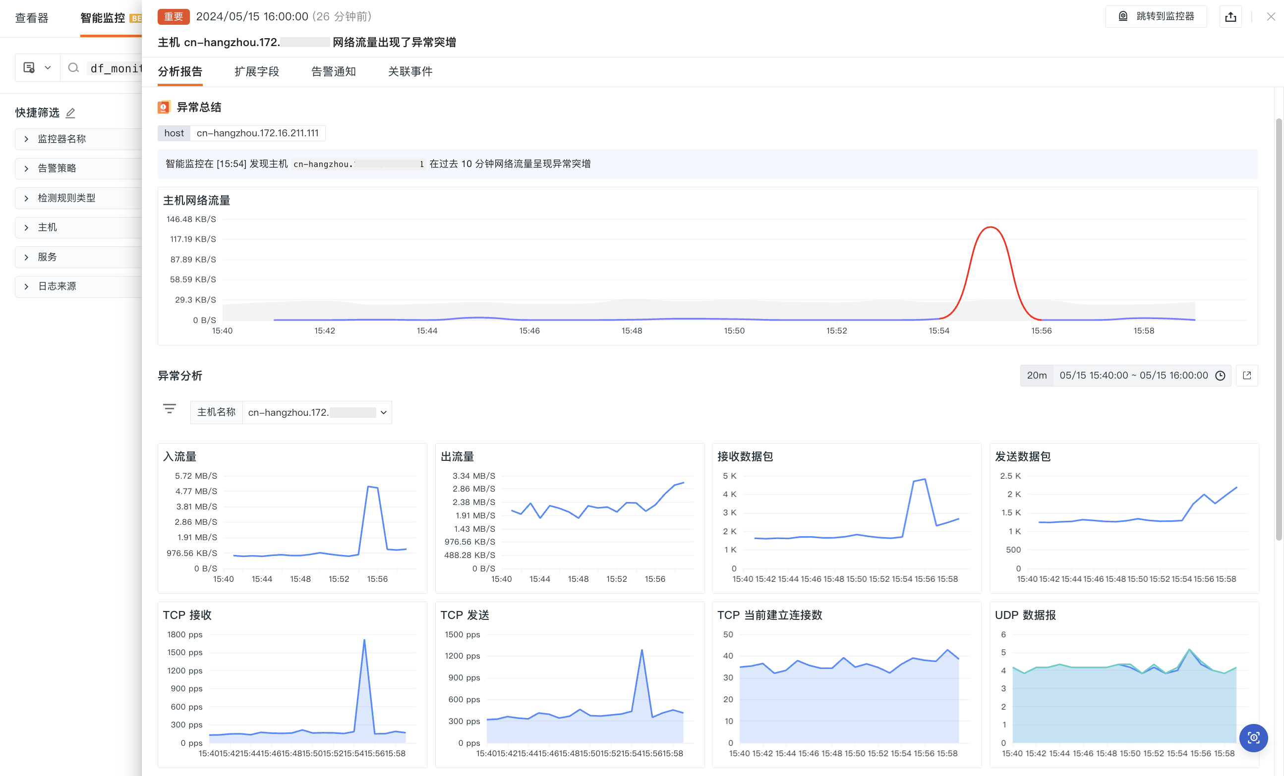 Suitable for monitoring business hosts with high requirements for stability and reliability. Supports providing analysis reports for generated anomaly events.
