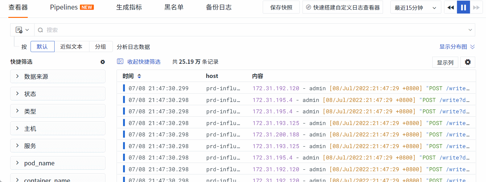 Search using the key:value format for forward filtering, for example: searching for status:error in the log explorer returns all log data where the status is error.