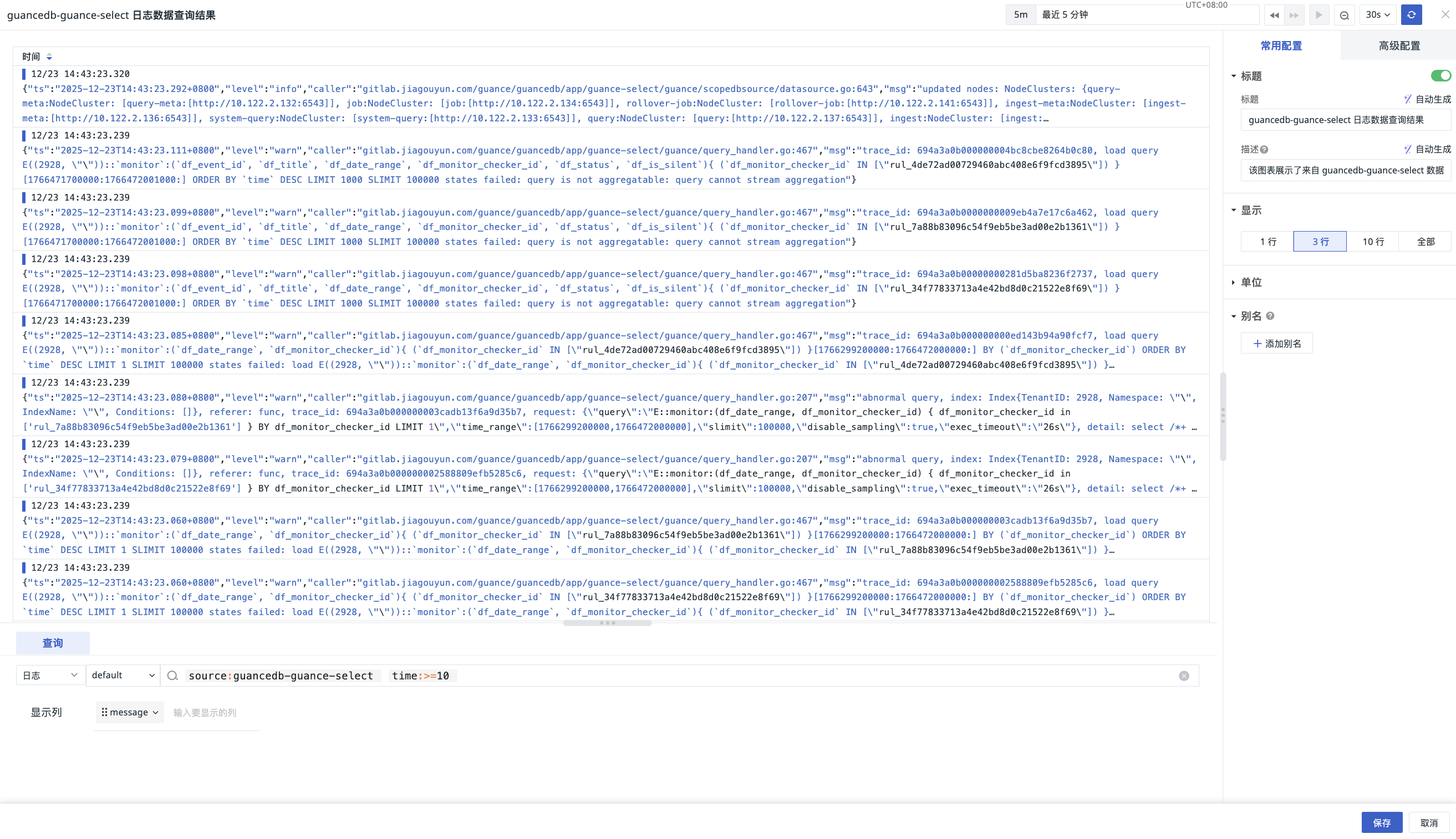 When querying "LOG" data, you can set the number of lines to display for the message within the list, including: