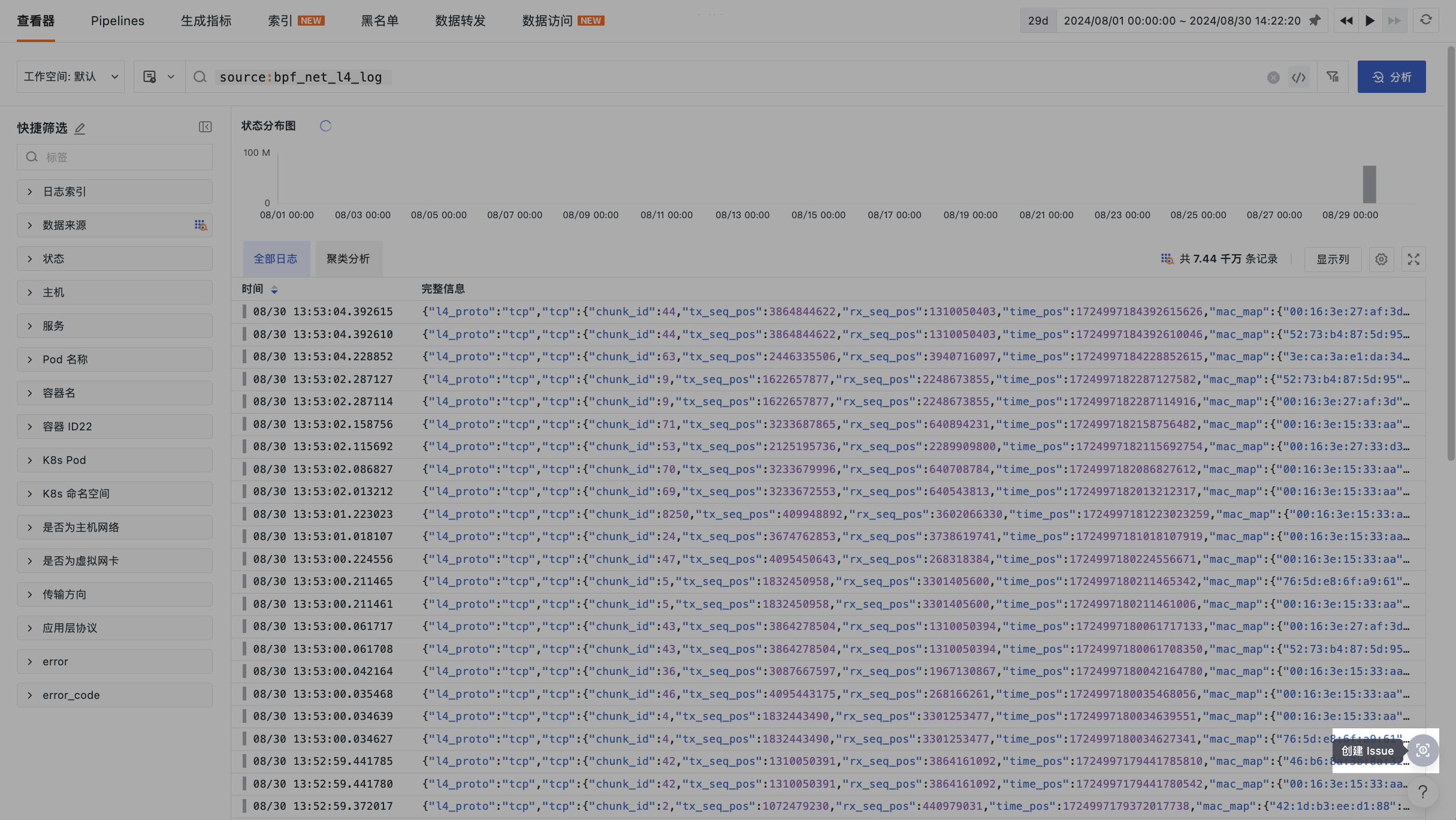 status:unknown的日志数据。点击右下角新建 Issue。 -