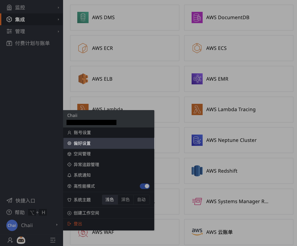 进入该入口,您可以对当前工作空间的页面偏好进行设置,包括语言、主题模式以及详情页的打开方式等。
