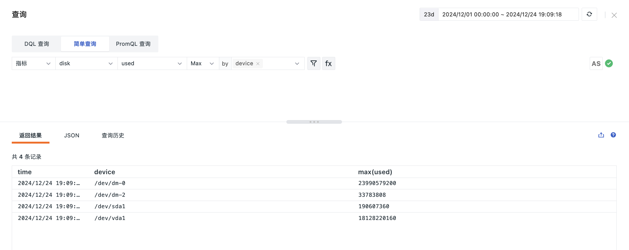 在快捷入口 > 查询工具 > DQL 查询 中进行指标数据查询和分析。