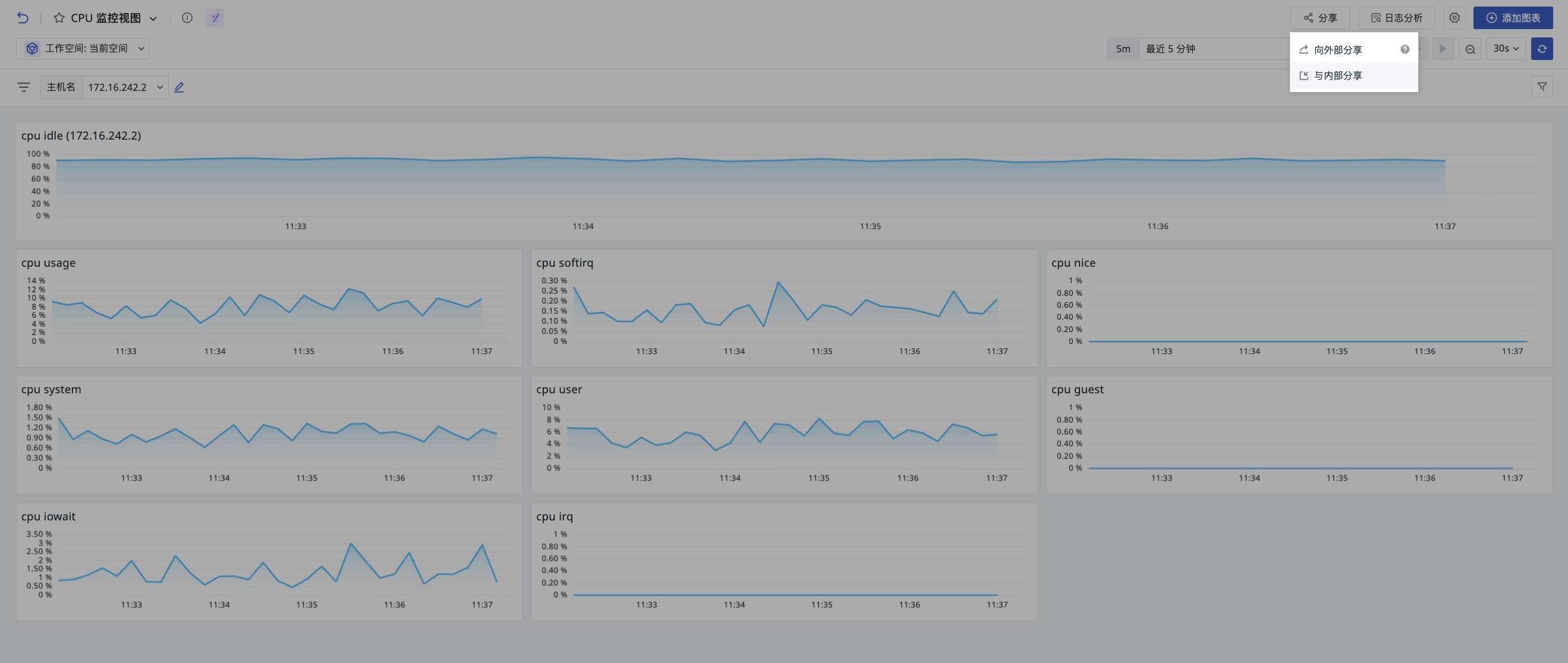 若工作空间被授予了其他工作空间,可在仪表板中切换工作空间查看对应图表信息。