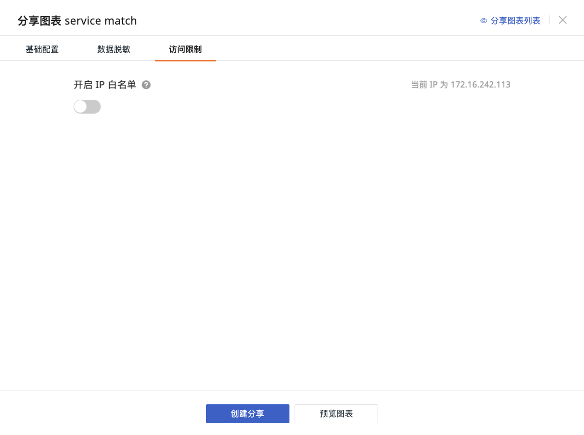可选择是否为当前被分享图表开启访问 IP 白名单。